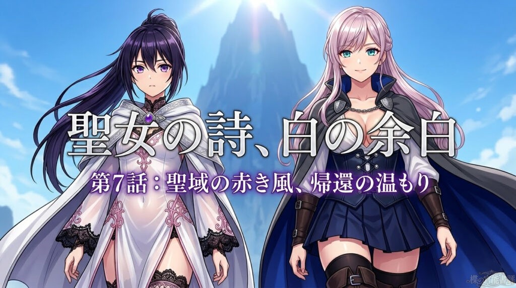王都の路地裏に残る、焼きたてのパンの香りと、遠ざかる子供たちの笑い声。 昨日、リュカと共に歩いた石畳の感触は、今も楪(ゆずりは)の足裏に、確かな安らぎの記憶として残っていた。 聖女としての重圧から解き放たれ、ただの少女として市井(しせい)の賑わいに身を浸した数時間。 言葉にせずとも伝わってきたリュカの不器用な気遣いは、異邦の地で孤独に震える彼女の心を、静かに、けれど深く癒やしてくれた。 けれど、朝の訪れと共に、夢のような時間は終わりを告げる。 行き先は、聖域とされる霊峰。 表向きは静養、けれどその ...