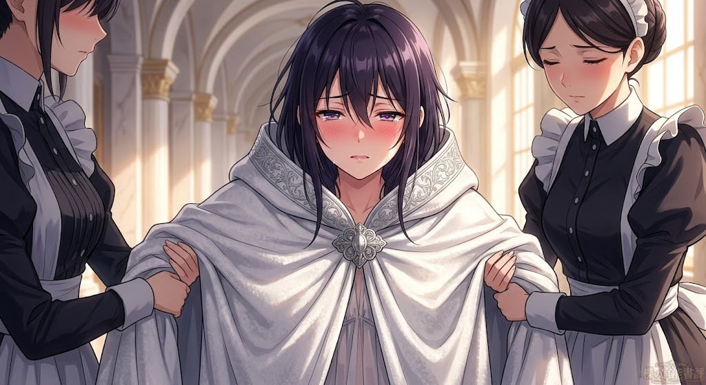 重厚なブローチで固定されたそのマントは、羞恥を煽るほど薄い『薄氷の聖衣』を覆い隠し、彼女を『高貴なる聖女』としてパッケージし直す、新たな檻のようでもあった。