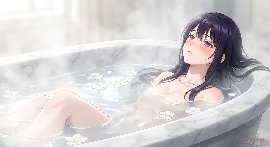 数人の侍女たちに囲まれ、柔らかな海綿が肌を撫でるたび、楪の口から熱を帯びた声が漏れる。