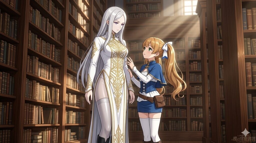 朝の光が斜めに差し込む静かな書庫。そこには、まだアラリックの姿はなかったが――代わりに、先客が一人いた。