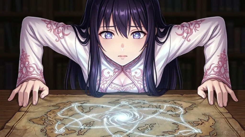 アラリックは静かに地図を閉じた。そして、手に持った水晶の杖を、まるで彼女の鼓動を測るかのように、楪(ゆずりは)の足元へと向けた。