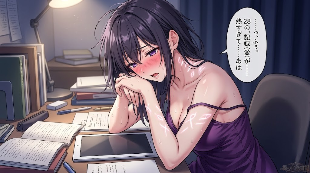 28もの没入の果てに、理性の壁は崩壊し、処理の揺らぎ(バグ)という名の絶頂が、何度も、何度も、私の身体を突き上げては、無意味な空白(スペース)を生み出していく。